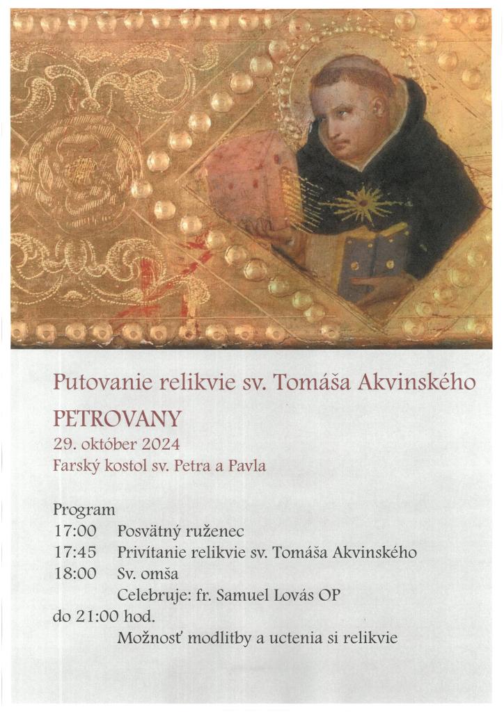 utorok 29.10.2024 od 17.00 hod. v kostole sv. Petra a Pavla v Petrovanoch